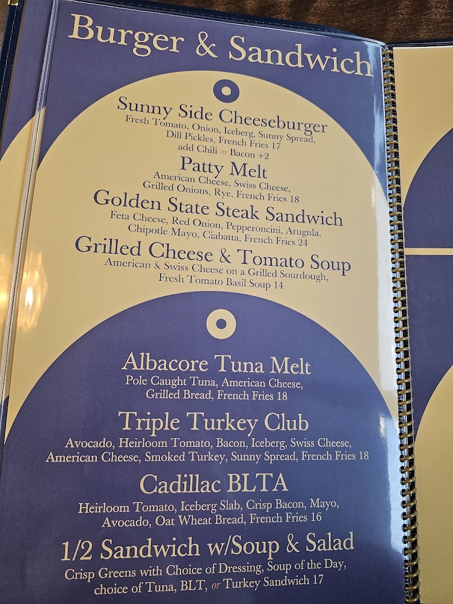 Avocado, heirloom tomato, bacon, iceberg. Swiss cheese, American cheese, smoked turkey, sunny spread, and french fries.